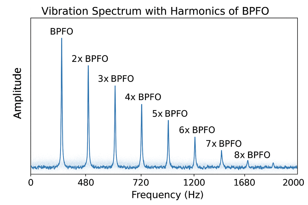 Exempel bild på övertoner i ett frekvensspektra. Övertoner (även kallat harmoniska frekvenser) i spektrum kommer från en periodisk våg, med det menas en sinusvåg som ex. kan vara avhuggen i toppen. Även komplexa signaler ger samma effekt och beror på att FFT algoritmen har svårt att omvandla komplexa signaler. Detta är alltså en matematisk produkt som egentligen inte finns i ”verkligheten”, däremot så används fenomenet för att identifiera skador på bland annat lager och är en del i att bedöma hur långt gånget en skada har fortlöpt.